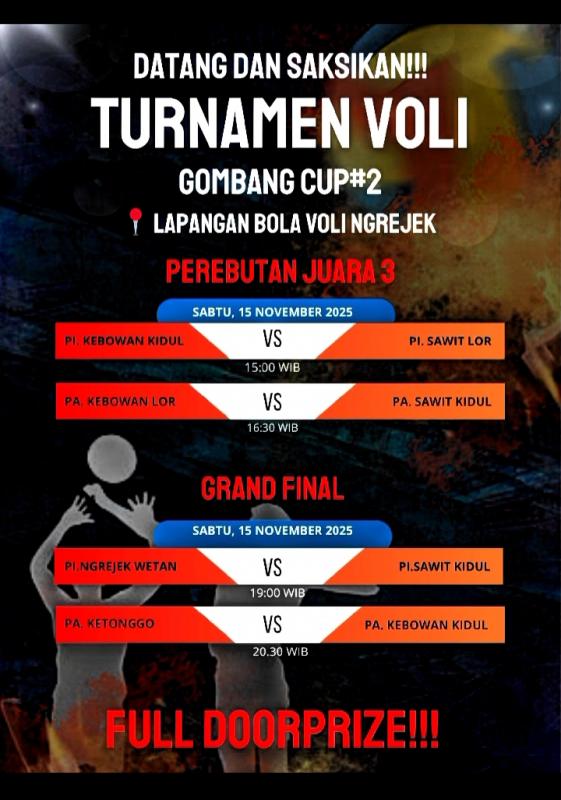 Gombang (SIDA), Sabtu, 15/11/2025 Gombang Cup II memasuki babak final. Bertempat di lapangan lemah wingit Ngrejek Wetan, Gombang. Untuk tim putri Padukuhan Sawit Kidul vs Padukuhan Ngrejek Wetan. Tim Putra Padukuhan Kebowan Kidul vs Padukuhan Ketonggo.